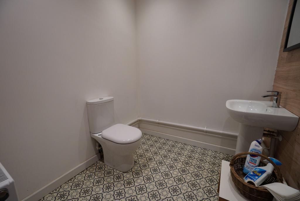 The generous open plan main space has beautiful character and features including stone walls and exposed beams, kitchen prep area and separate wc/cloaks room.